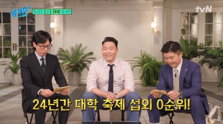 tvN '유 퀴즈 온 더 블럭'에 출연한 싸이는 5월에만 무려 17군데의 대학 축제에 초청을 받았다고 밝혀 MC들을 놀라게 했는데요. 그는 축제마다 워터 캐논을 가지고 다니며 화려한 공연을 선보인다고 합니다.